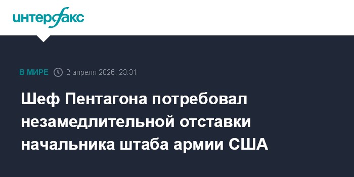 Шеф Пентагона потребовал незамедлительной отставки начальника штаба армии США