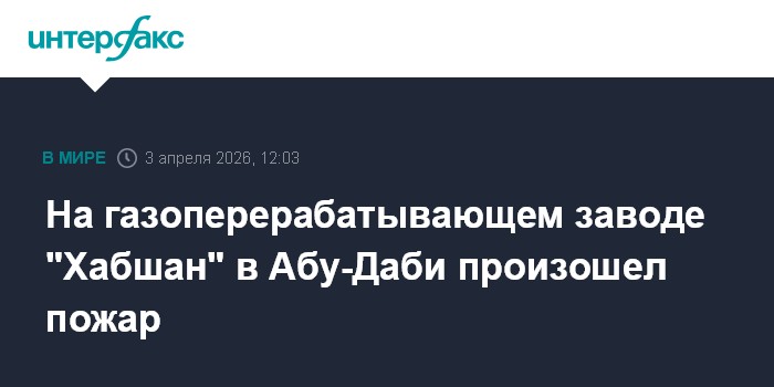 Москва. 3 апреля. INTERFAX.RU - На газоперерабатывающем заводе "Хабшан" в Абу-Даби произошел пожар после того, как системы ПВО ОАЭ отразили иранские ракетные удары, сообщает в пятницу издание The National (ОАЭ).
