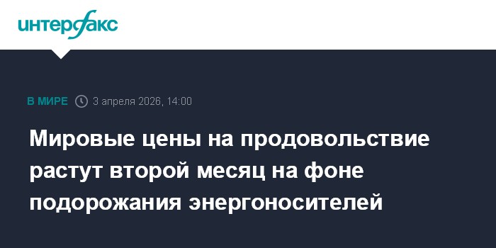 "В той или иной степени выросли значения индексов цен на все группы товаров – зерновые, мясо, молочную продукцию, растительные масла и сахар, что обусловлено как рыночной конъюнктурой, так и реакцией на повышение цен на энергоносители в связи с эскалацией конфликта на Ближнем Востоке", - говорится в докладе. По сравнению с показателем марта 2025 года цены выросли на 1%. Впрочем, это на 19,8% ниже пикового уровня, зафиксированного в марте 2022 года.