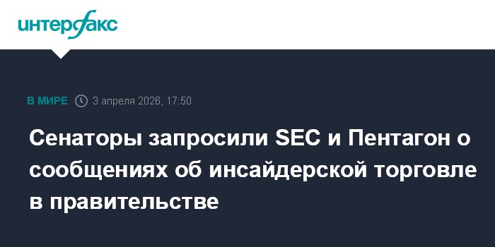Москва. 3 апреля. INTERFAX.RU - Американские сенаторы-демократы Марк Уорнер (Виргиния) и Адам Шифф (Калифорния) выразили обеспокоенность возможными нарушениями законодательства об инсайдерской торговле федеральными чиновниками и запросили у SEC и Пентагона, что эти ведомства сделали, чтобы выявить, расследовать и предотвращать подобные сделки.