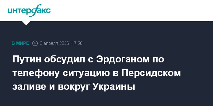 Москва. 3 апреля. INTERFAX.RU - Президент РФ Владимир Путин и его турецкий коллега Реджеп Тайип Эрдоган в ходе телефонного разговора обсудили ситуацию на Ближнем Востоке и вокруг Украины, сообщила в пятницу пресс-служба Кремля.