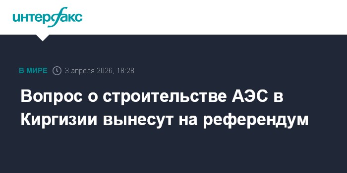 Москва. 3 апреля. INTERFAX.RU - В Киргизии состоится референдум по строительству совместно с "Росатомом" атомной электростанции, сообщил в пятницу журналистам первый заместитель кабинета министров республики Данияр Амангельдиев.