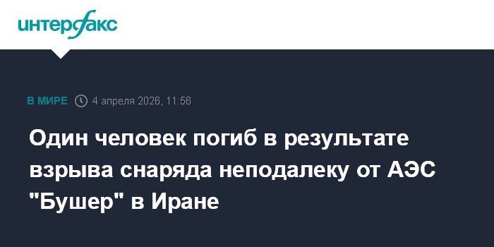 Москва. 4 апреля. INTERFAX.RU - Один человек погиб в результате разрыва снаряда близ здания, в котором расположены вспомогательные службы АЭС "Бушер", сообщила в субботу иранская газета Tehran Times со ссылкой на Иранскую организацию атомной энергии.