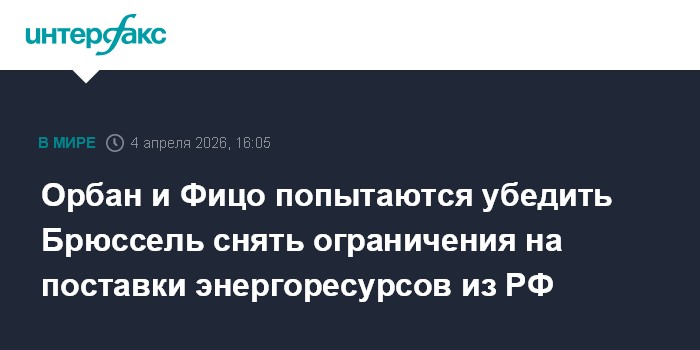 Москва. 4 апреля. INTERFAX.RU - Премьер-министры Венгрии и Словакии Виктор Орбан и Роберт Фицо в телефонной беседе договорились о совместных действиях в попытке убедить руководство ЕС снять ограничения на поставки нефти и газа из России.
