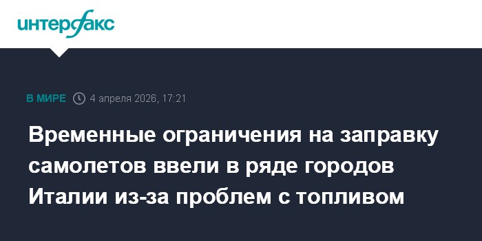 Москва. 4 апреля. INTERFAX.RU - Аэропорты в итальянских городах Милан, Венеция, Болонья и Тревизо ввели до 9 апреля ограничения на заправку коммерческих авиарейсов в связи с недостаточным количеством топлива у поставщика Air BP Italia, сообщает в субботу EFE.