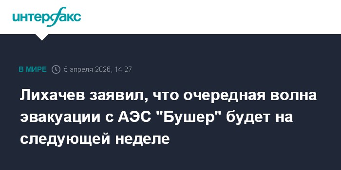 Лихачев заявил, что очередная волна эвакуации с АЭС "Бушер" будет на следующей неделе