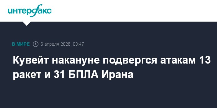 Москва. 6 апреля. INTERFAX.RU - Военные Кувейта заявили, что за последние сутки отражали атаки десятков иранских ракет и беспилотников, в том числе на электростанции, опреснительные сооружения и нефтяные объекты.