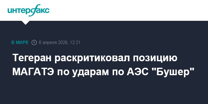Тегеран раскритиковал позицию МАГАТЭ по ударам по АЭС "Бушер"
