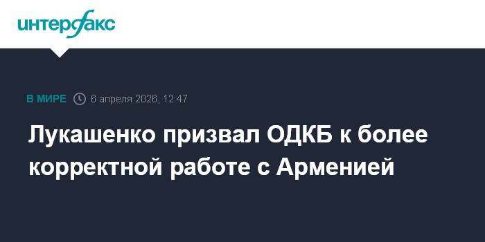 Москва. 6 апреля. INTERFAX.RU - Организации Договора о коллективной безопасности (ОДКБ) нужно быть очень аккуратной и корректной в работе с Арменией, заявил президент Белоруссии Александр Лукашенко на встрече с генеральным секретарем ОДКБ Таалатбеком Масадыковым.