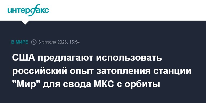 Москва. 6 апреля. INTERFAX.RU - Представители США предлагают учесть опыт России при затоплении орбитальной станции "Мир" для свода с орбиты Международной космической станции после завершения ее эксплуатации, сообщил генконструктор Ракетно-космической корпорации (РКК) "Энергия" - руководитель полета российского сегмента станции Владимир Соловьев.