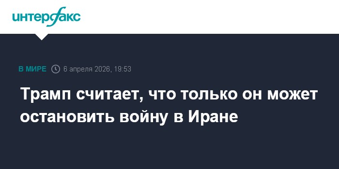 Москва. 6 апреля. INTERFAX.RU - Президент США Дональд Трамп заявил, что он единственный сможет решить вопрос о прекращении огня между США и Ираном.
