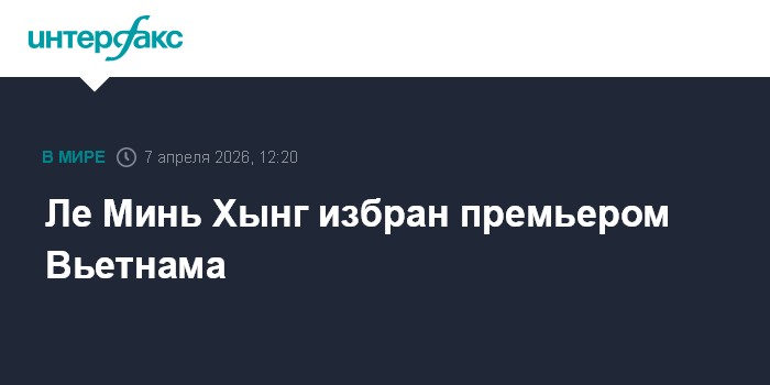 Москва. 7 апреля. INTERFAX.RU - Национальное собрание Вьетнама во вторник приняло резолюцию, предусматривающую назначение главы организационного отдела ЦК Коммунистической партии Вьетнама Ле Минь Хынга премьером страны, сообщает портал издания Vnexpress.