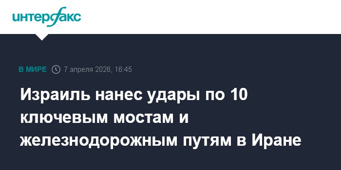 Москва. 7 апреля. INTERFAX.RU - Израильская авиация атаковала ряд мостов и железнодорожных линий в Иране с целью сорвать переброску вооружений Корпусом стражей исламской революции (КСИР), сообщает во вторник The Times of Israel со ссылкой на источники.
