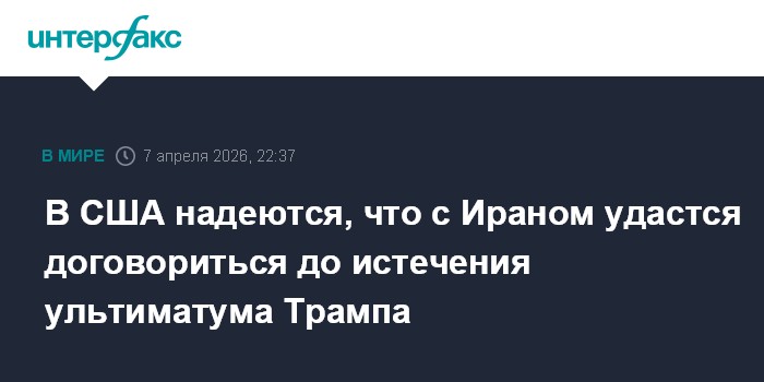 Москва. 7 апреля. INTERFAX.RU - В Белом доме по-прежнему допускают возможность того, что у США и Ирана получится добиться взаимопонимания до того, как подойдет к концу срок ультиматума американского президента Дональда Трампа, передает CNN со ссылкой на источники.
