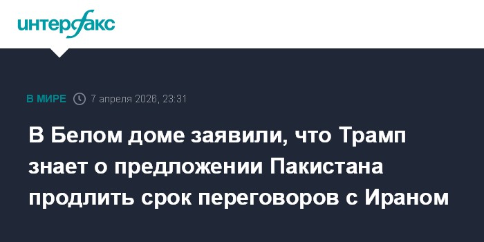 В Белом доме заявили, что Трамп знает о предложении Пакистана продлить срок переговоров с Ираном