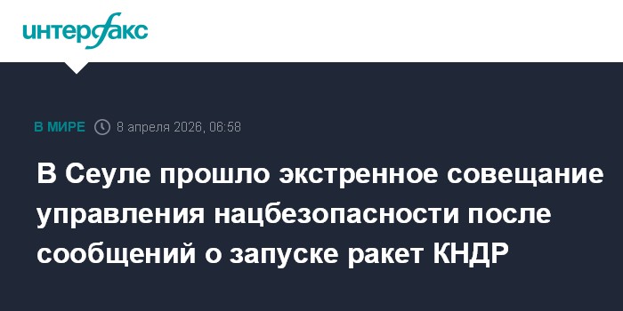 Москва. 8 апреля. INTERFAX.RU - Управление национальной безопасности при администрации президента Южной Кореи провело экстренное совещание после сообщений о запуске ракет, произведенном КНДР в среду утром.