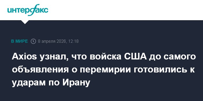 Москва. 8 апреля. INTERFAX.RU - Американские войска до самого последнего момента, когда президент США Дональд Трамп объявил о перемирии, готовились к нанесению массированных ударов по Ирану, сообщил портал Axios со ссылкой на представителя министерства обороны Соединенных Штатов.