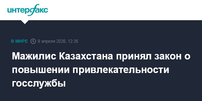 Москва. 8 апреля. INTERFAX.RU - Мажилис парламента Казахстана одобрил во втором чтении законопроект "О государственной службе", который вводит меры повышению привлекательности госслужбы, привлечению и удержанию квалифицированных кадров.