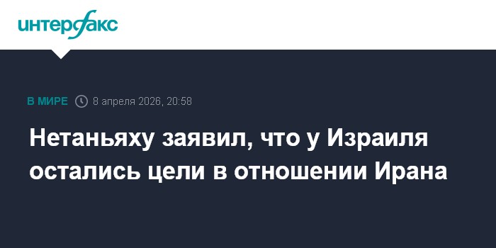 Москва. 8 апреля. INTERFAX.RU - Премьер-министр Израиля Биньямин Нетаньяху заявил, что в отношении Ирана у Израиля еще есть невыполненные цели, которых израильские власти добьются тем или иным способом, сообщает в среду The Times of Israel.
