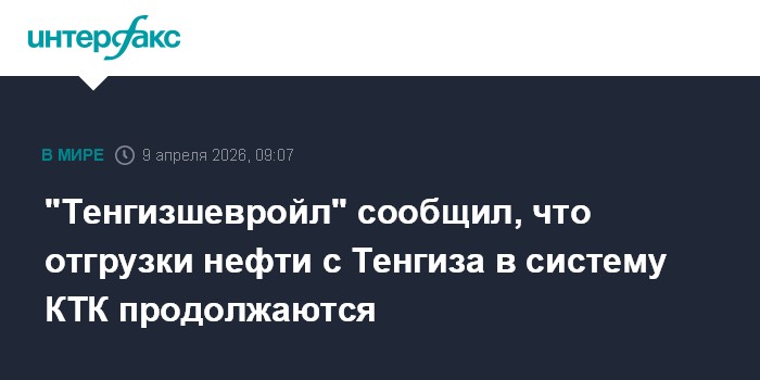 Москва. 9 апреля. INTERFAX.RU - "Тенгизшевройл" (ТШО) продолжает осуществлять отгрузки нефти на экспорт в систему Каспийского трубопроводного консорциума (КТК), сообщили агентству "Интерфакс" в ТШО.