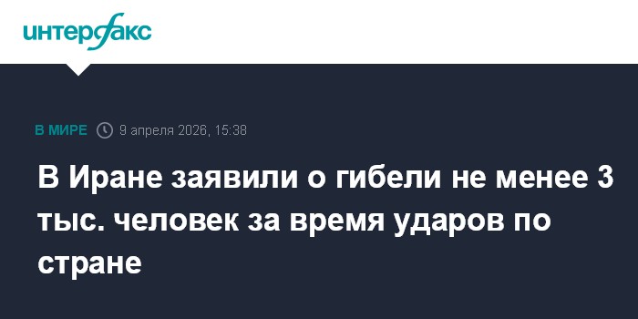 Москва. 9 апреля. INTERFAX.RU - Американские и израильские удары по Ирану с 28 февраля привели к гибели как минимум 3 тыс. человек, заявил в четверг глава Иранской организации судебной медицины Аббас Масжеди Арани.