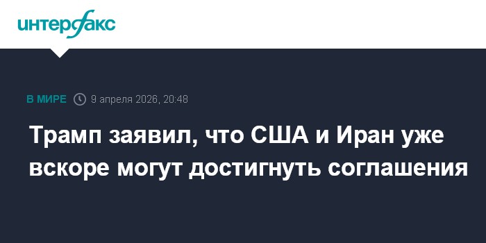 Москва. 9 апреля. INTERFAX.RU - Президент США Дональд Трамп заявил телеканалу NBC, что Вашингтон и Тегеран уже в скором будущем могут достигнуть соглашения по урегулированию конфликта.