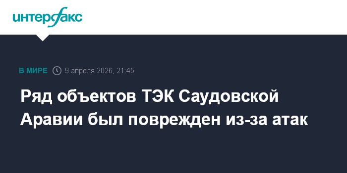 Москва. 9 апреля. INTERFAX.RU - Ряд объектов топливно-энергетического комплекса Саудовской Аравии был поврежден из-за атак, передает госагентство королевства со ссылкой на официальный источник.