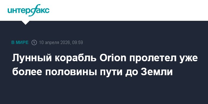 Москва. 10 апреля. INTERFAX.RU - Американский космический корабль Orion с четырьмя астронавтами на борту, совершивший в рамках миссии Artemis II облет Луны, преодолел уже более половины пути, возвращаясь к Земле, сообщило NASA.