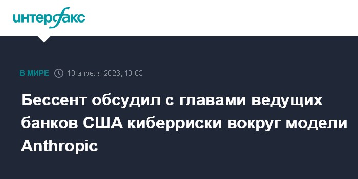 Москва. 10 апреля. INTERFAX.RU - Министр финансов США Скотт Бессент на этой неделе собрал руководителей крупнейших американских банков для обсуждения киберрисков, связанных с новой ИИ-моделью Anthropic, пишет газета Financial Times со ссылкой на информированные источники.