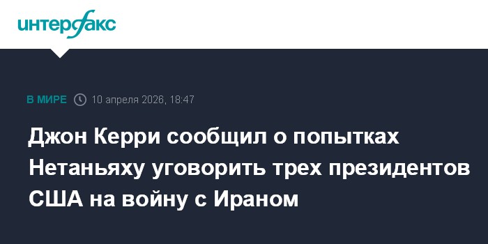 Москва. 10 апреля. INTERFAX.RU - Премьер-министр Израиля Биньямин Нетаньяху предпринимал попытки уговорить президентов США Джорджа Буша младшего, Барака Обаму и Джо Байдена на проведение военной операции против Ирана, заявил радиостанции GBH Джон Керри, руководивший Госдепартаментом США в 2013-2017 годах при Бараке Обаме.