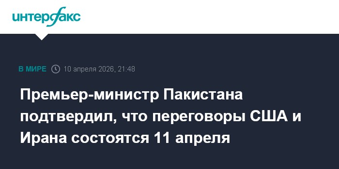 Москва. 10 апреля. INTERFAX.RU - Премьер-министр Пакистана Шахбаз Шариф подтвердил, что переговоры между США и Ираном состоятся 11 апреля, сообщает Aja News.
