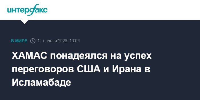 Москва. 11 апреля. INTERFAX.RU - Палестинское движение ХАМАС выразило надежду на успех переговоров США и Иране в Пакистане, сообщил в субботу телеканал Al Jazeera.