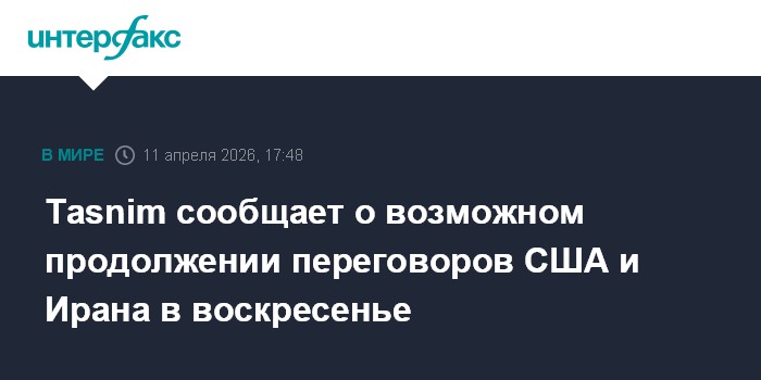 Москва. 11 апреля. INTERFAX.RU - Переговоры США и Ирана в Исламабаде могут быть продлены еще на один день, сообщило в субботу иранское агентство Tasnim.