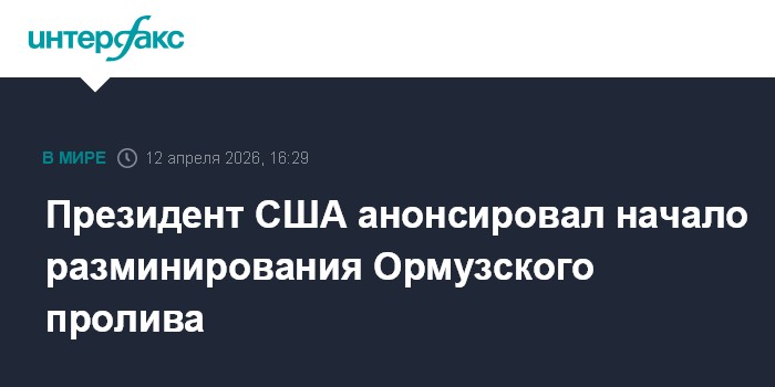 Москва. 12 апреля. INTERFAX.RU - Президент США Дональд Трамп заявил, что американские военные приступают к процессу очистки от мин Ормузского пролива.
