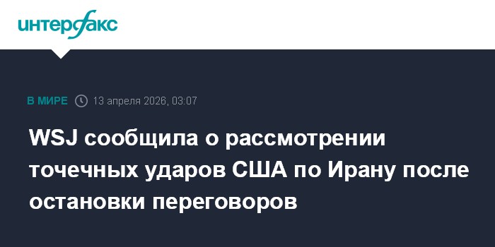 Москва. 13 апреля. INTERFAX.RU - Президент США Дональд Трамп на фоне переговорного тупика рассматривает возможность возобновления ограниченных военных ударов по Ирану, пишет The Wall Street Journal.