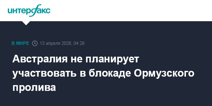 Москва. 13 апреля. INTERFAX.RU - Австралия не рассматривает возможность участия в военно-морской блокаде Ормузского пролива со стороны США. Об этом сообщил заместитель главы МИД страны Мэтт Тислтуэйт в эфире телеканала Sky News Australia.