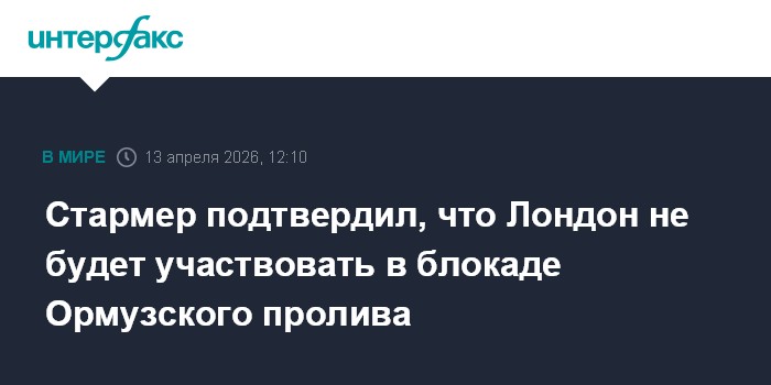 Москва. 13 апреля. INTERFAX.RU - Британский премьер Кир Стармер подтвердил, что Великобритания не будет принимать участие в блокаде Ормузского пролива, сообщает в понедельник The Guardian.