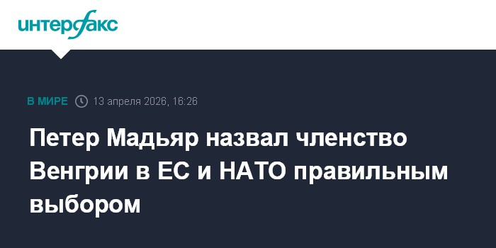 Москва. 13 апреля. INTERFAX.RU - Народ Венгрии гордится тем, что их страна входит в Евросоюз и НАТО, заявил на пресс-конференции Петер Мадьяр, лидер партии "Тиса", победившей на парламентских выборах.