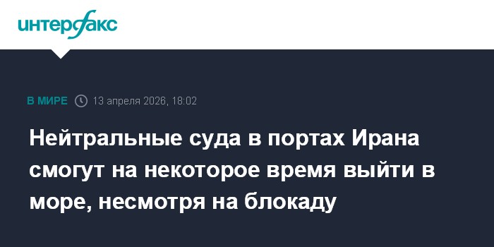"Нейтральные суда, находящиеся в настоящий момент в иранских портах, смогут в течение ограниченного периода времени покинуть территорию", - говорится в сообщении UKMTO в социальной сети X. Продолжительность этого периода будет объявлена позже.