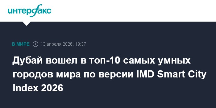Москва. 13 апреля. INTERFAX.RU - Дубай занял шестое место в рейтинге IMD Smart City Index 2026, подтвердив статус ведущего технологического хаба региона.