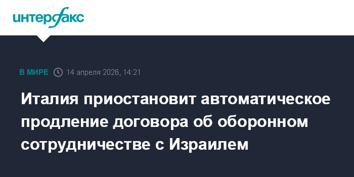 Москва. 14 апреля. INTERFAX.RU - Премьер-министр Италии Джорджа Мелони заявила, что ее правительство временно прекращает практику автоматического продления соглашения о сотрудничестве в сфере обороны с Израилем, сообщает во вторник ANSA.