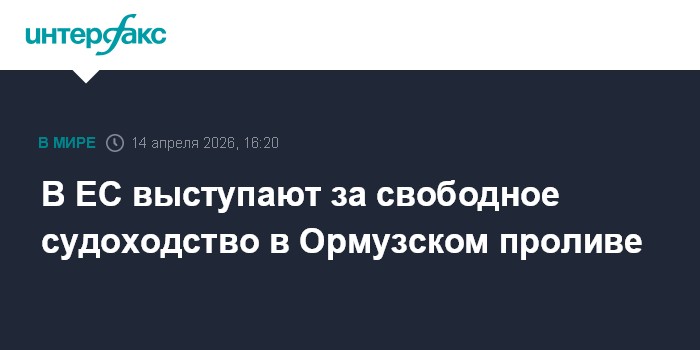 Москва. 14 апреля. INTERFAX.RU - Свобода судоходства в Ормузском проливе должна быть гарантирована, Евросоюз приветствует любые инициативы государств-членов ЕС по усиленной координации с партнерами в регионе, чтобы гарантировать морскую безопасность, заявил Ануар аль-Ануни, официальный представитель главы дипломатии ЕС Каи Каллас.