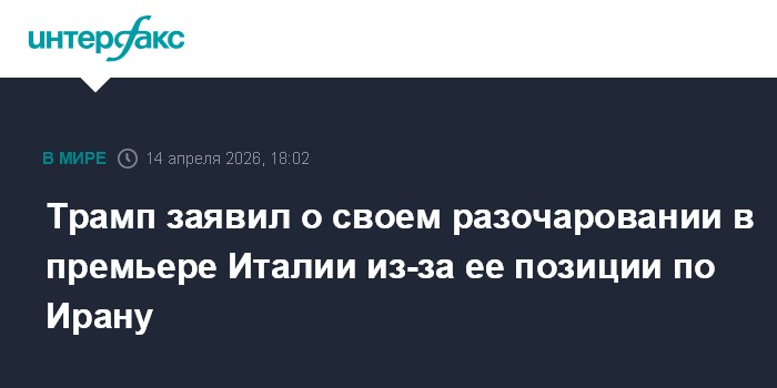 Москва. 14 апреля. INTERFAX.RU - Президент США Дональд Трамп заявил, что премьер Италии Джорджа Мелони не поддержала его в том, что касается иранского кризиса, и потому он в ней разочаровался.
