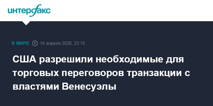 Москва. 14 апреля. INTERFAX.RU - Штаты разрешили проводить транзакций с властями Венесуэлы при условии, что это необходимо для торговых переговоров, сообщили во вторник в американском Минфине.