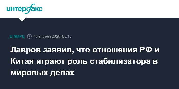 Москва. 15 апреля. INTERFAX.RU - Отношения России и Китая играют роль стабилизатора в мировых делах и имеют все большее значение для "мирового большинства", заявил министр иностранных дел РФ Сергей Лавров.