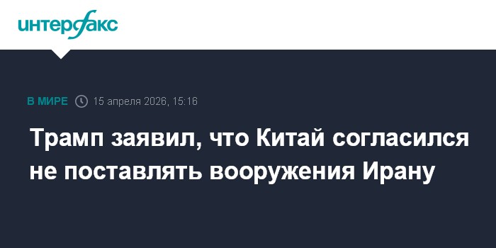 Москва. 15 апреля. INTERFAX.RU - Президент США Дональд Трамп в среду заявил, что власти КНР решили не передавать вооружения Ирану.