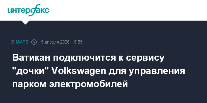 Москва. 15 апреля. INTERFAX.RU - Подразделение Volkswagen Group (VW) в сфере электромобильных сервисов - Elli Mobility - станет партнером Ватикана в обслуживании его растущего парка электромобилей.