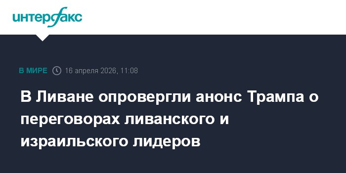 Москва. 16 апреля. INTERFAX.RU - Информация о скорых телефонных переговорах лидеров Ливана и Израиля, о которых объявил ранее президент США Дональд Трамп, не является достоверной, сообщает в четверг "Аль-Джазира" со ссылкой на источник в Ливане.