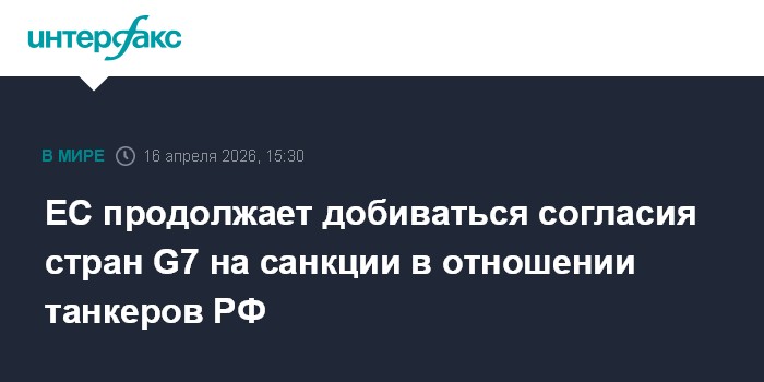 Москва. 16 апреля. INTERFAX.RU - Евросоюз продолжает обсуждать со странами G7 свое предложение в рамках 20-го пакета антироссийских санкций ЕС о полном запрете на оказание морских услуг для танкерного флота РФ, заявила официальный представитель Еврокомиссии (ЕК) Паула Пинью.
