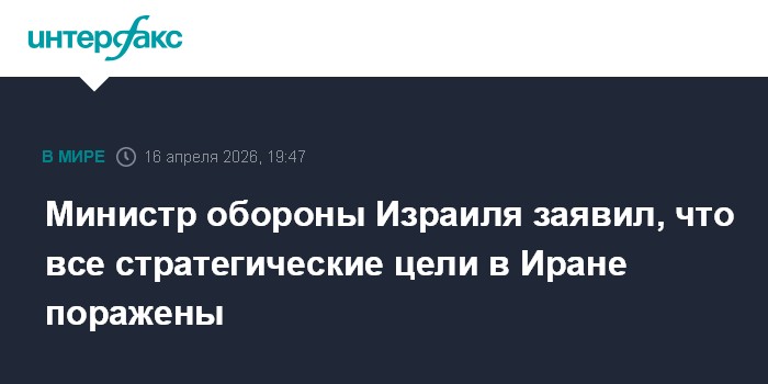 Москва. 16 апреля. INTERFAX.RU - Министр обороны Израиля Исраэль Кац заявил в четверг, выступая в министерстве в Тель-Авиве, что все стратегические цели и возможности Ирана были ликвидированы в ходе американо-израильских ударов.